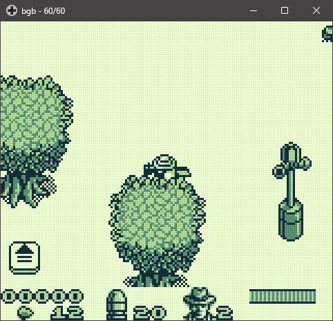 While working on this game and starting to understand some of the limitations of the system, I found myself increasingly impressed with some of my childhood games. For instance, in Jurassic Park the player can walk behind elements (walls and trees), which seems impossible given how the background layer, sprites and the window layer interact, yet they pulled this off. The graphics of Donkey Kong Land always were ahead of the competition, but knowing what I know now it seems even more impossible what those developers pulled off! The sheer size of Pokémon Gold/Silver/Crystal also amazes me, while using multiple banks for storage, these games are huge.